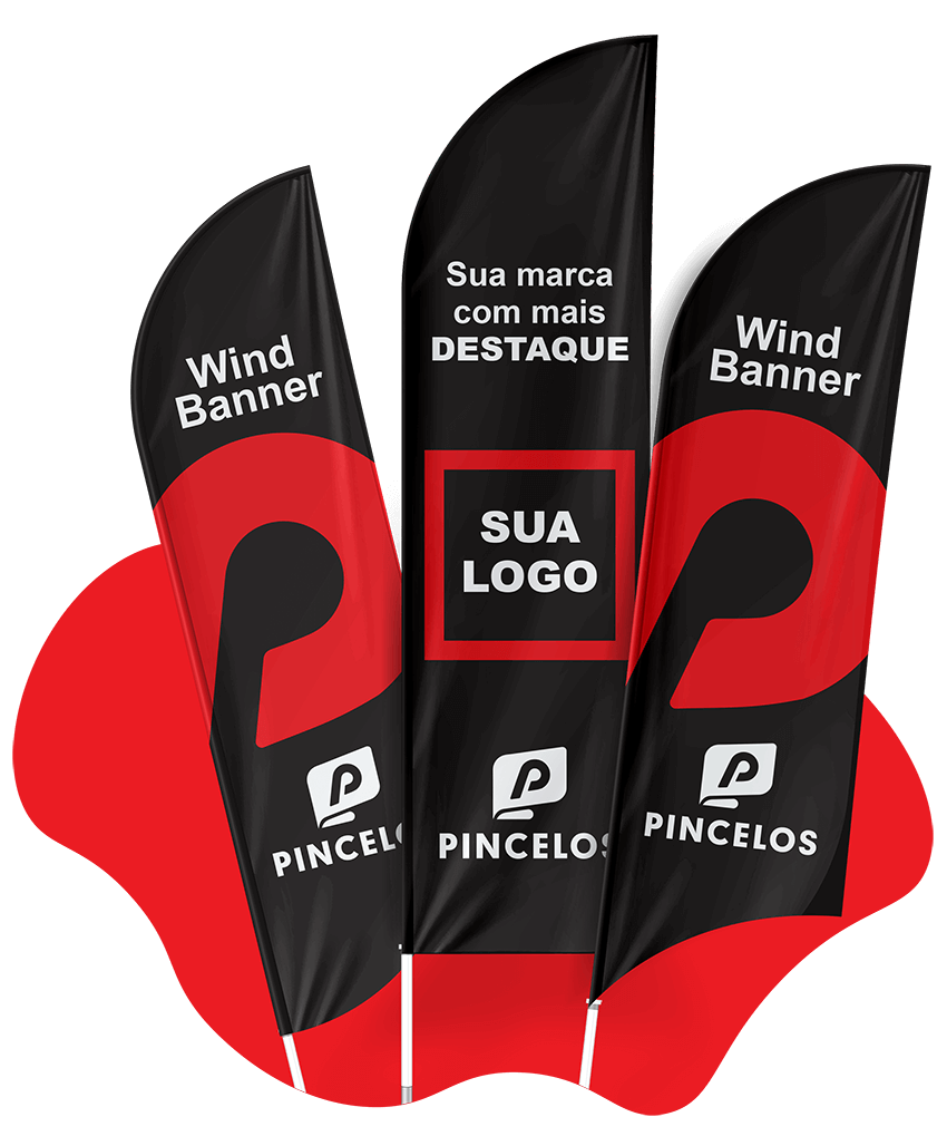 Destaque sua marca de longe! Windbanners e flagbanners com cores vivas, resistentes ao vento e perfeitos para eventos e promoções.